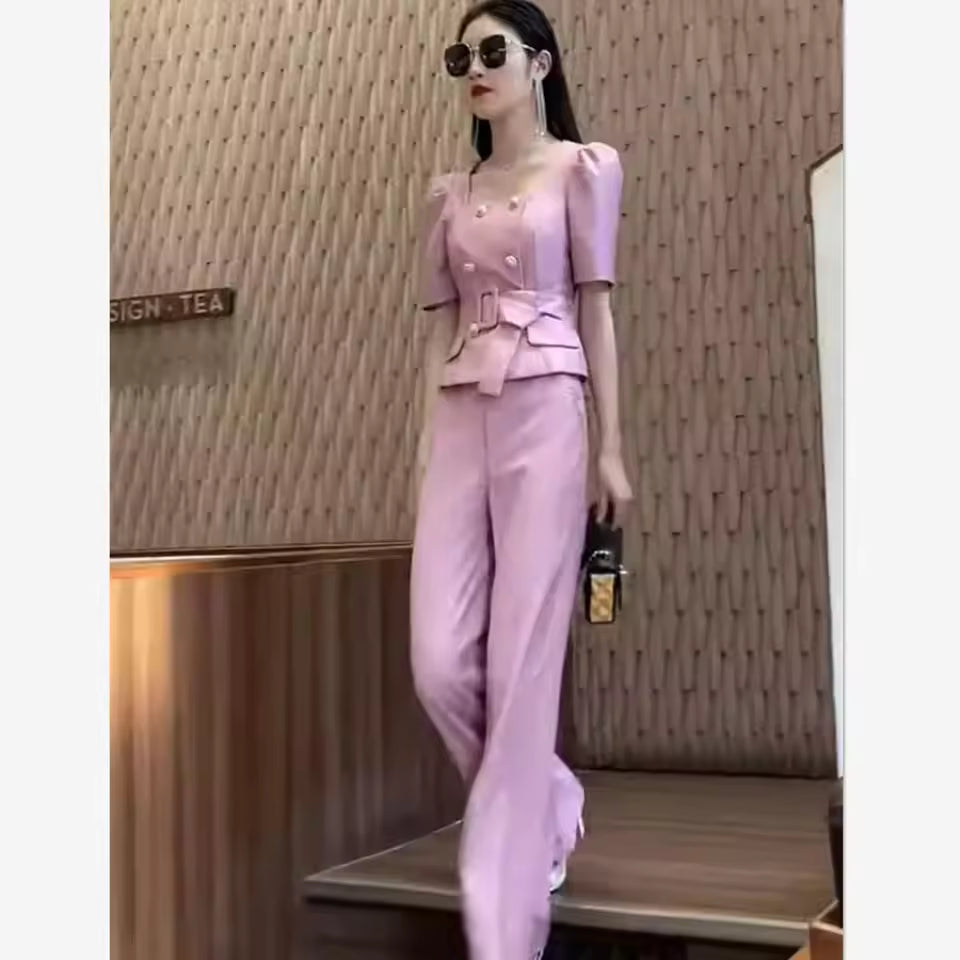 Cet ensemble pour femme comprend un haut et un pantalon coordonnés. Il convient pour différentes occasions pendant la saison estivale.